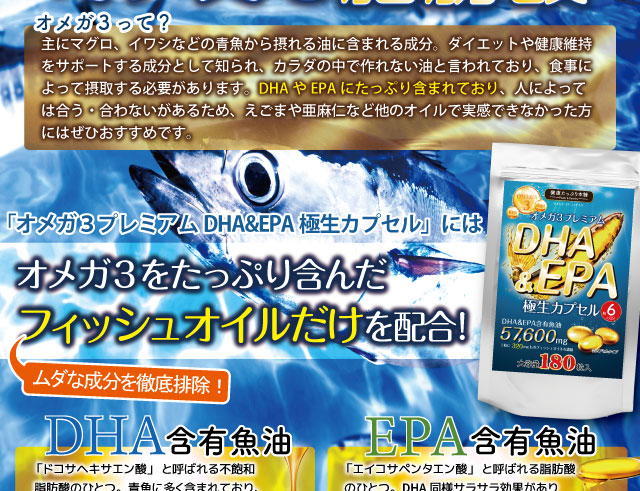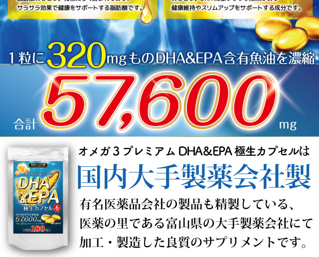 DHA EPA サプリ サプリメント オメガ3 極生カプセル 大容量 約6ヶ月分 トランス脂肪酸 必須脂肪酸 国産 送料無料