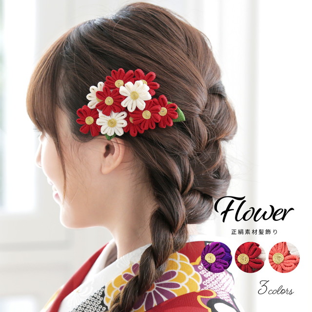 卒業式 袴 髪飾り つまみ細工 成人式 振袖 花 正絹 シルク コーム 七五三 送料無料