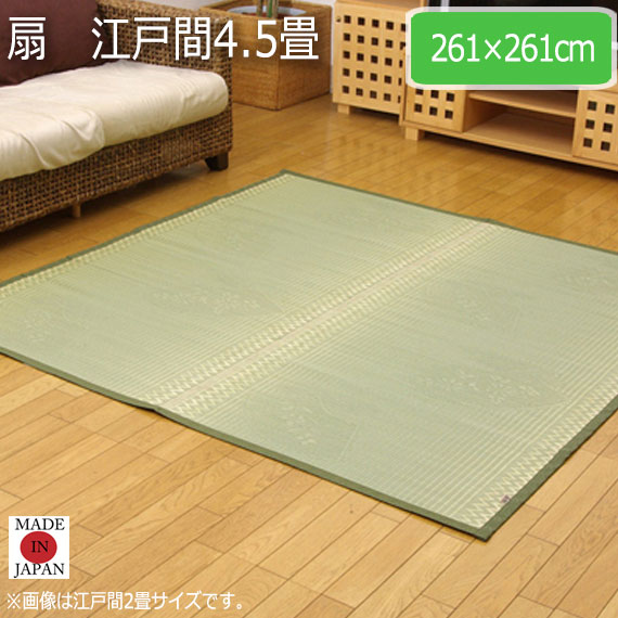 扇 江戸間4.5畳 261×261cm (ラグマット ラグ カーペット 角型 畳 和 和室 洋 洋室 和モダン 紋織 国産 九州 抗菌 防臭 高級感 い草 柄 シンプル ベーシック 無地 花莚 弾力性 耐久性 おしゃれ おすすめ)