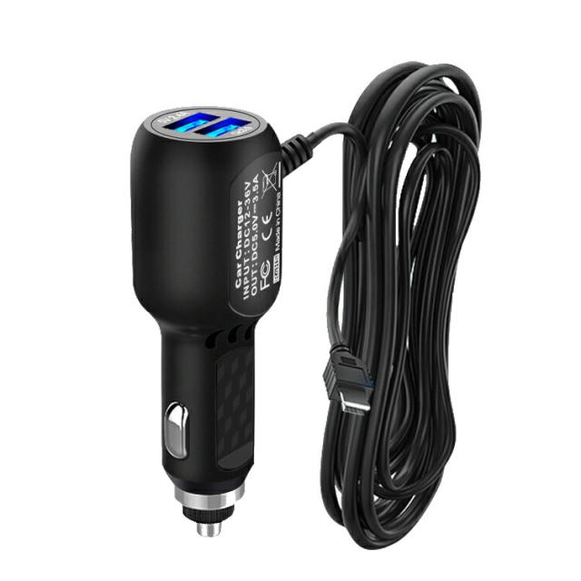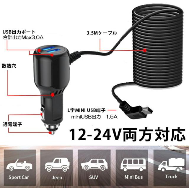 QC3.0対応シガーアダプタ スマホに急速充電USBポート2個搭載+L字型miniUSB端子 デュアルUSB QC3.0シガー CIGMINIQC302