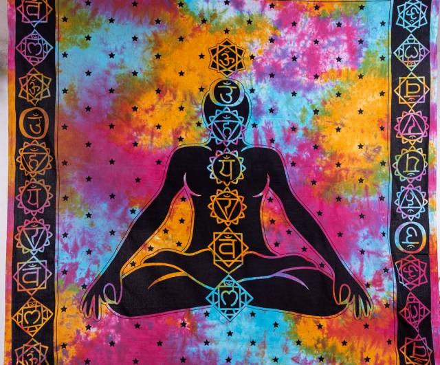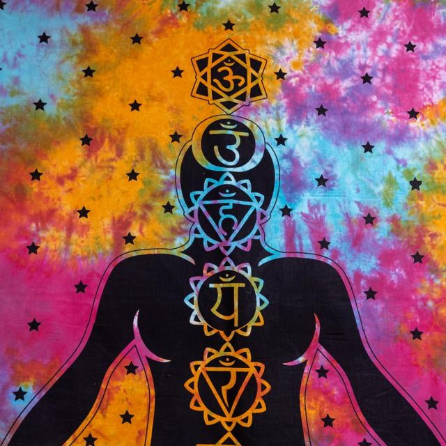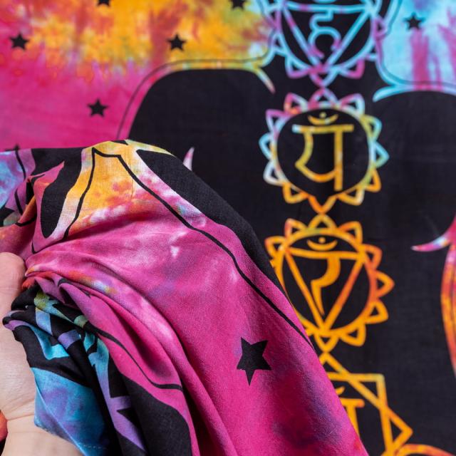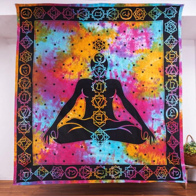 マルチクロス 7チャクラ タイダイホーリーカラー〔約202cm×約218cm〕 / タペストリー テーブルクロス ベッドシーツ 大きなこたつカバー ベッドカバー ソファーカバー マルチカバー 目隠し布 壁掛け布 背景布 アジア インド ファブリック エスニック