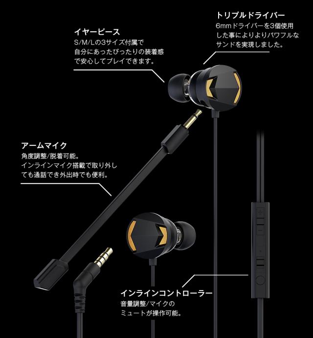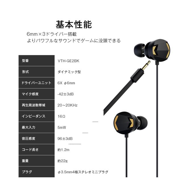 ゲーミングイヤホン マイク付き switch PS4 PS5 フォートナイト 有線 高音質 重低音 クリア ダイナミック型 VTH-GE2BK VERTEX ヴァーテックス ゲーミング イヤホン