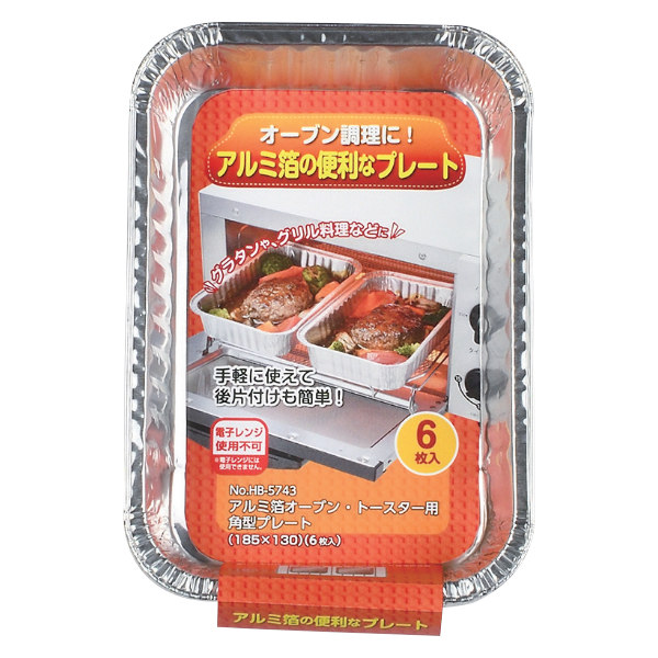 アルミ箔オーブン・トースター用 角型プレート 185×130mm 6枚入 ( ガス火専用 オーブン調理 使い捨てアルミ皿 アルミ容器 ホイルコンテナ グラタン ドリア 角型 アルミ製 アルミニウム箔 便利グッズ 消耗品 )