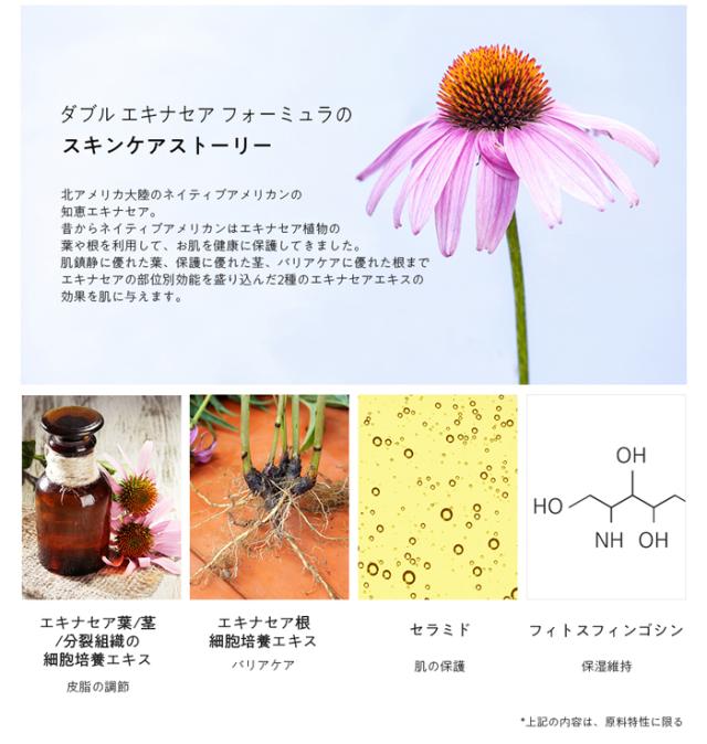 - エキナセア抽出物含有。外部有害環境から皮膚を保護。