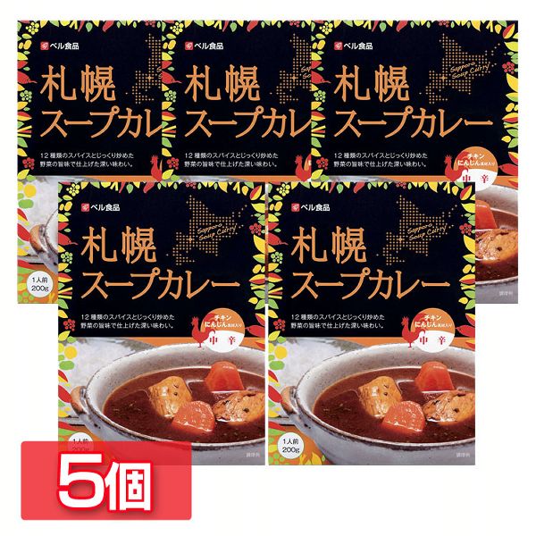 カレー レトルトカレー 5個 札幌 スープカレー スープカリー レトルトカレー 札幌スープカレー中辛200g ベル食品 レトルト スープカレー 札幌スープカレー チキンスープカレー 非常食 常備食 ストック 備蓄 お家時間 北海道