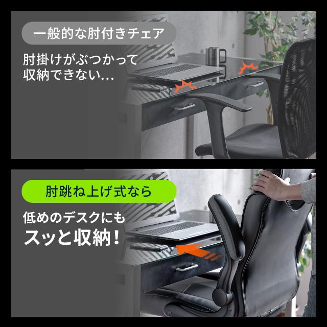 ⇒ご購入の前にご確認下さい必要に応じて出し入れできる、跳ね上げ式の肘掛け(アームレスト)を装備したゲーミングチェア。フローリング床を傷付けにくいウレタンキャスターつき。【WEB限定商品】