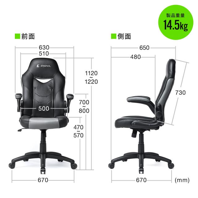 肘掛け跳ね上げ式 ゲーミングチェア PVCレザー生地 ロッキング機構つき[150-SNCL020]