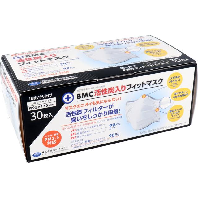 BMC 活性炭入り フィットマスク 使い捨て不織布マスク レギュラーサイズ 30枚入 〈代引き・日時指定不可・沖縄/離島への配送不可〉