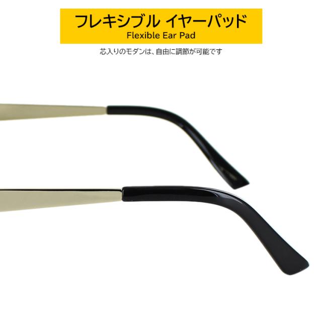 フロントのサングラス枠フレーム部分はプラスチック、テンプル(耳をかける)部分はメタルを使用!