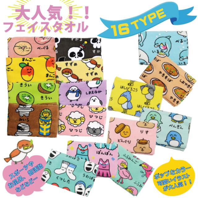 【2枚までメール便280円対応】フェイスタオル プリント 16種類 タオル おもしろ雑貨 生活雑貨 34×75cm 面白デザイン face-towel-15【キャラクター 遠足 子供用 通園 通学 入学式 キッズタオル】┃