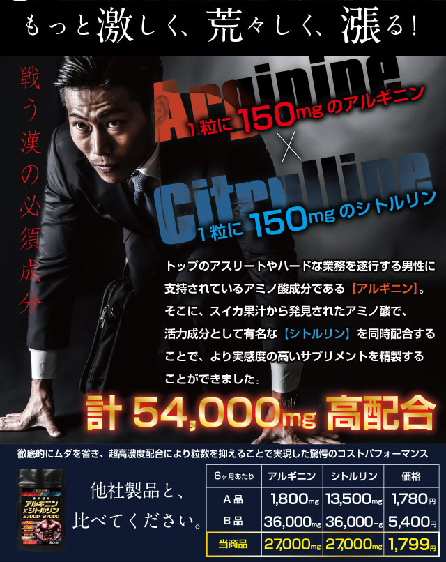 アルギニン シトルリン メンズ サプリ サプリメント 大容量 約6ヶ月分 アミノ酸 スタミナ 体力 持久力 滋養 筋肉 活力 自信 男性 送料無料