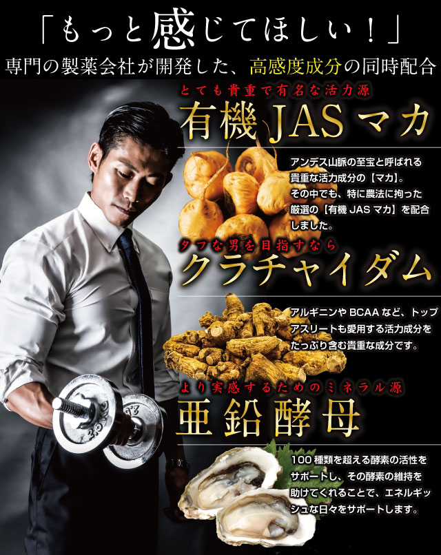 L-シトルリン、クラチャイダム末、マカパウダー、亜鉛含有酵母 / L-アルギニン、セルロース、微粒酸化ケイ素、ステアリン酸カルシウム