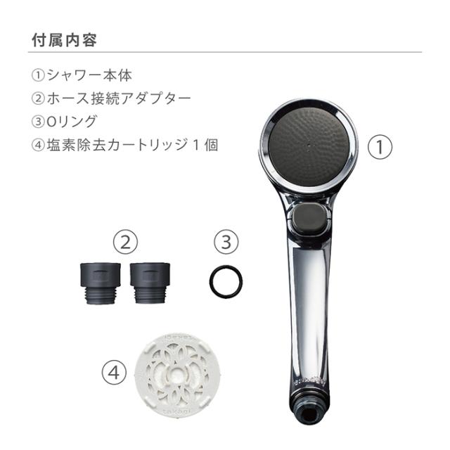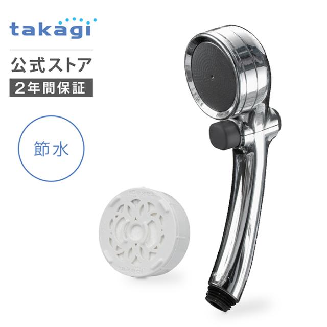 シャワーヘッド タカギ 浄水 止水ボタン 節水 水圧 シャワー 塩素除去 節約 洗浄 美肌 肌ケア ヘアケア G1/2 takagi JSB333M メタリックキモチイイシャワピタMiz-e 塩素除去カートリッジ1個入 2年間保証 公式 送料無料 手元スイッチ