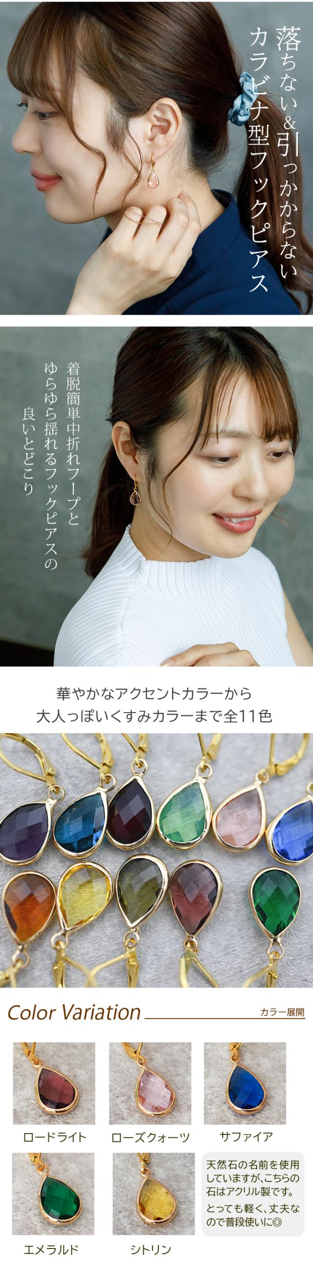 ピアス 金属アレルギー サージカルステンレス フープ 落ちない 引っかからない 外れにくい フック カラフルストーン アクリル しずく 雫 ドロップ ひと粒 片耳 1個
