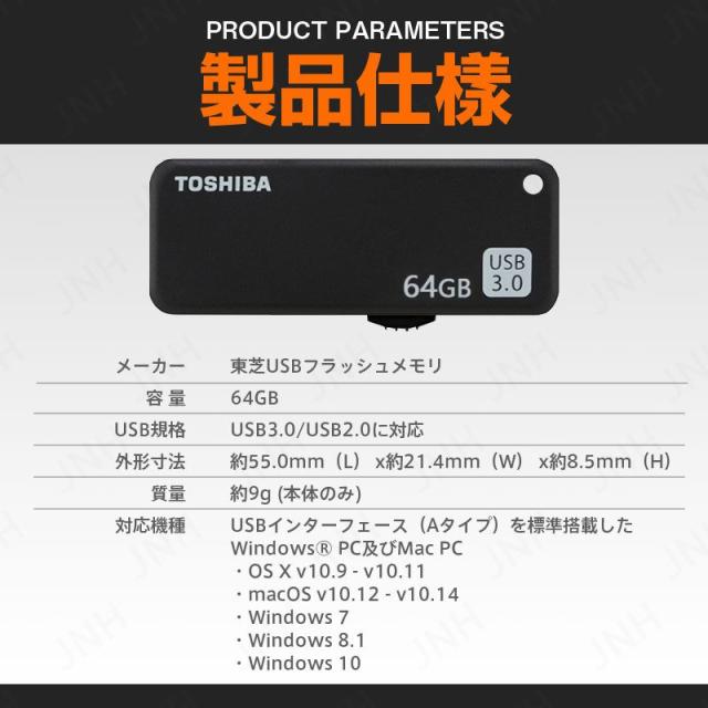USBメモリ64GB 東芝 TOSHIBA USB3.0 TransMemory R:150MB/s スライド式 ブラック 海外パッケージ ネコポス送料無料 ポイント消化