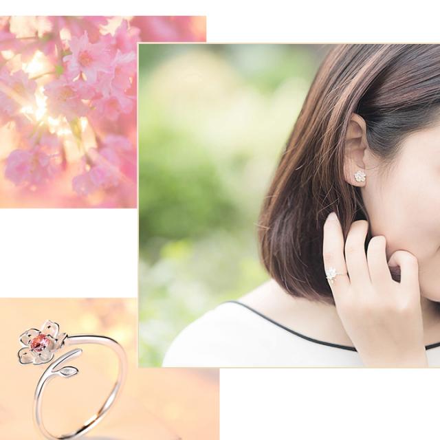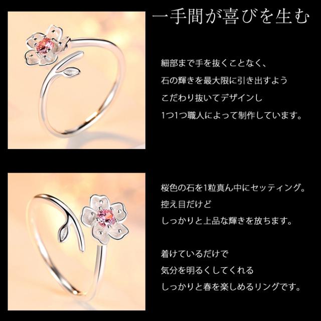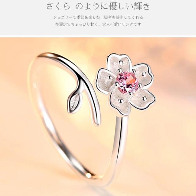 フリーサイズ 一粒さくらリング 桜 指輪 クリスマスプレゼント 女性 レディース シルバー925 プラチナ仕上げ 春 女 彼女 嫁 妻 娘 母 誕生日 記念日 ギフトラッピング対応 クリスマス_wp
