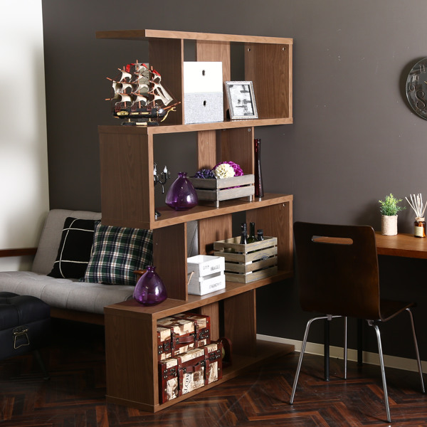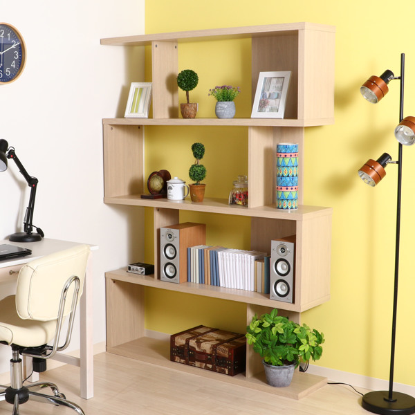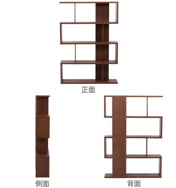 ディスプレイシェルフ ハイタイプ 4段 S型 オープンラック 幅120cm ( ディスプレイラック 収納 ブックシェルフ 本棚 収納棚 収納ラック シェルフ サイドボード ラック マガジンラック 書棚 多目的ラック 本 木製 木目 )