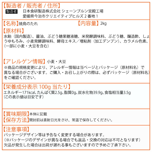 日本食研 ぬったれ 2kg 焼鳥 タレ パーティー 大人数