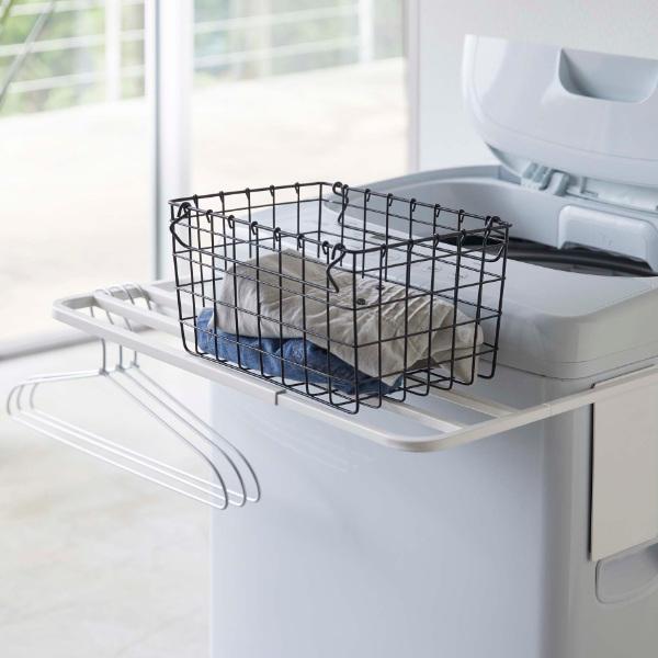 マグネット伸縮洗濯機バスタオルハンガー プレート 山崎実業 室内干し 部屋干し ( タオル掛け タオルスタンド バスタオル掛け タオルラック バスタオル 乾燥 カビ 防止 洗面所収納 ハンガー タオル 磁石 伸縮 収納 一時置き 棚 )