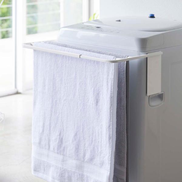 マグネット伸縮洗濯機バスタオルハンガー プレート 山崎実業 室内干し 部屋干し ( タオル掛け タオルスタンド バスタオル掛け タオルラック バスタオル 乾燥 カビ 防止 洗面所収納 ハンガー タオル 磁石 伸縮 収納 一時置き 棚 )