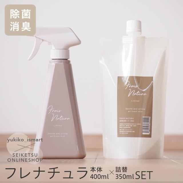 除菌スプレー 送料無料 消臭スプレー フレナチュラ yukiko_ismartさんコラボ グレージュ カラーボトル 本体ボトル400ml+詰め替え350m 2点セット ウイルス対策 マスクの除菌に