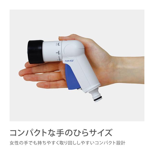 散水ノズルは軽くコンパクトな手のひらサイズでありながら、水形は4タイプに切り替えられます。