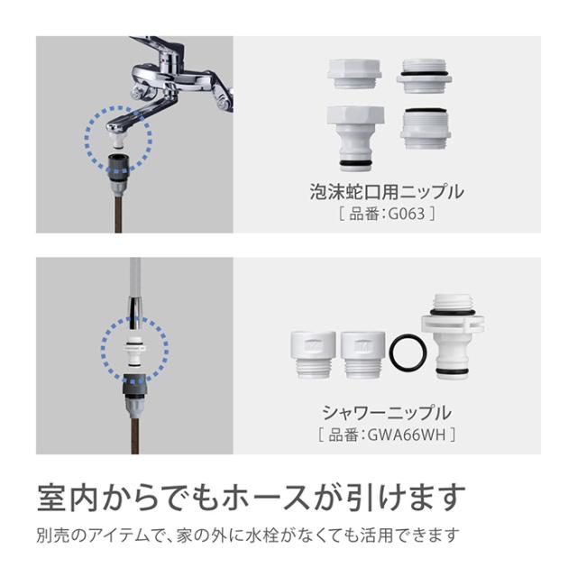 ホースをすべて収納できるので、日差しによるホースの劣化を防ぎます。