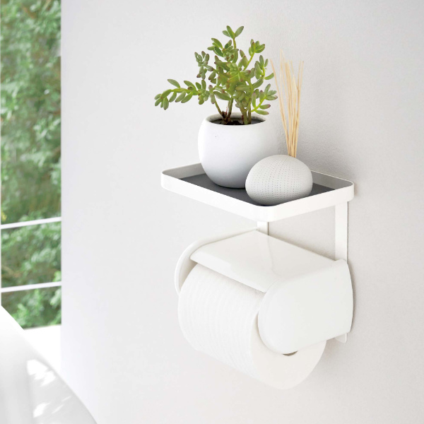 ホルダー上にはトレーが付いていて、掃除用具の収納やスマートフォンの一時置きなどに使えます!観葉植物を置いたり、いい香りの芳香剤を置くと、トイレが癒しの空間になります!