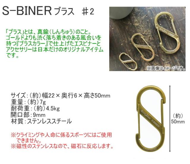 エスビナー ブラス ♯2 1個入 NI02707 ネコポス対応 ナイトアイズ S型カラビナ デュアルゲート ステンレス製