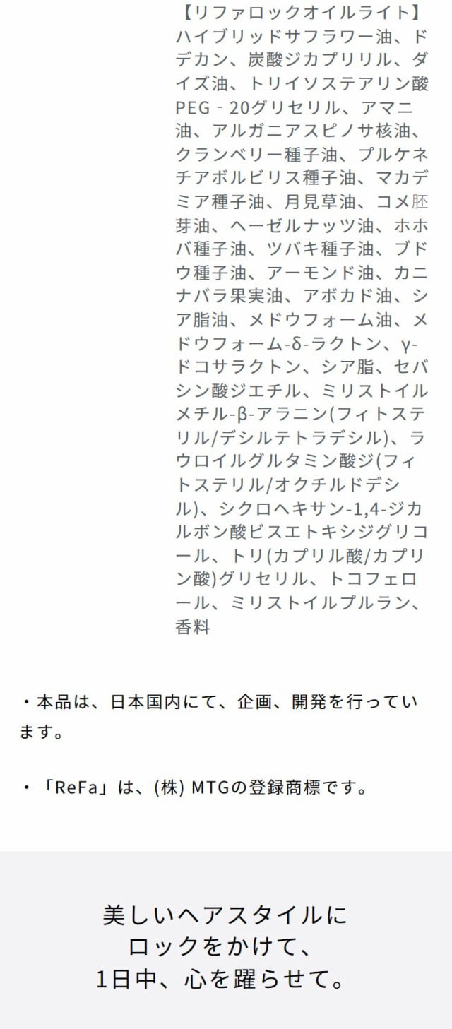 ReFa 公式 リファ ロックオイル フルーティフローラルの香り しっかりロック 人気 スタイリング ヘアオイル オイル コテ 洗い流さないトリートメント キープ nhc2104 nhc2301 LOCK OIL 100mL クリスマス ギフト プレゼント LC