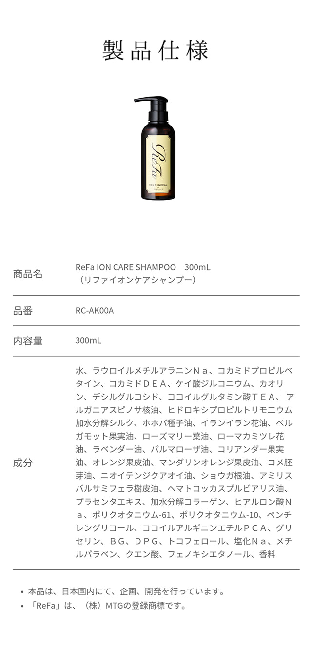 ReFa 公式 リファイオンケア シャンプー リファ 高濃度 イオン イオンミネラル ダメージ補修 しっとり やわらか 高濃度イオンケア 髪 頭皮 アミノ酸系洗浄成分 ギフト プレゼント nhc2104 ION CARE SHAMPOO