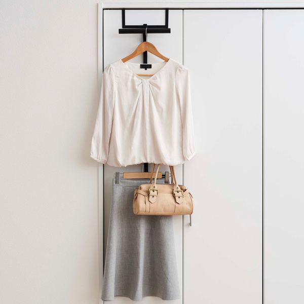 次の日着ていく服や鞄、毎日着る通勤・通学のスーツや制服を掛ければ、バタバタしがちな朝の身支度もスムーズに準備ができます。目に入りやすい位置に引っ掛けられるので、忘れ物防止にもなります。