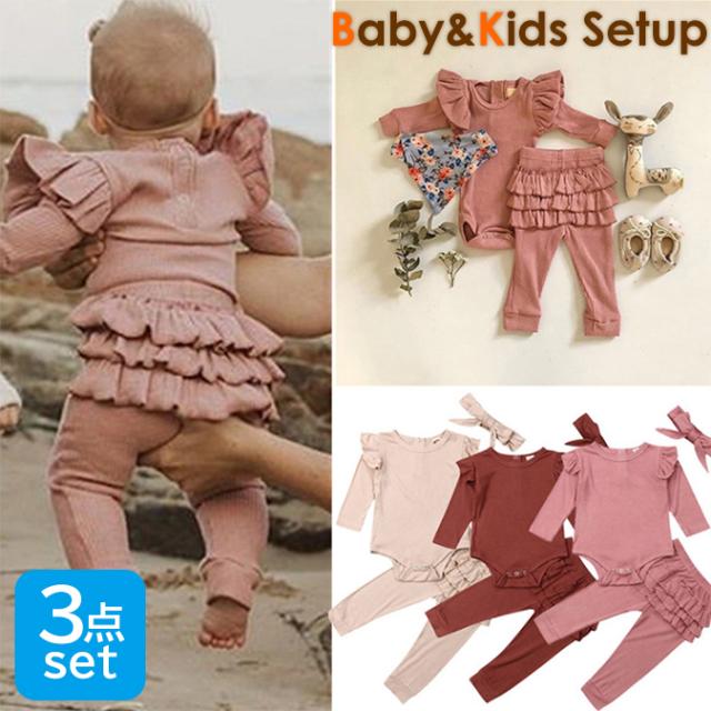 ベビー服 女の子 フリル ロンパース ズボン ヘッドドレス かわいい ホワイト ワイン ピンク 子供用 baby ギフト プレゼント 子供 ガールズ 送料無料 chd-f