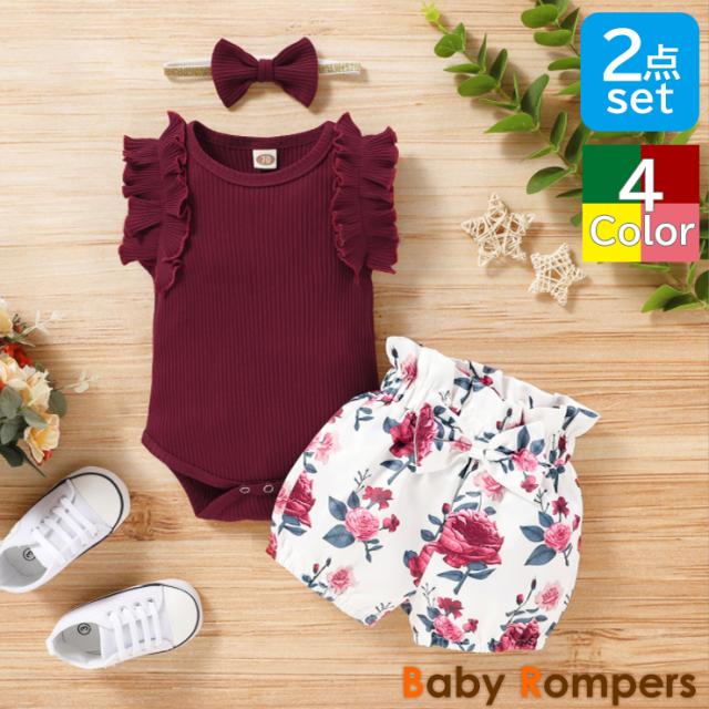 セール 【50%OFF】ベビー服 女の子 赤ちゃん ロンパース 花柄パンツ ノースリーブ 袖フリル ヘッドドレス ピンク ワイン イエロー グリーン かわいい 子供用 baby ギフト プレゼント 子供 ガールズ 送料無料 chd-f