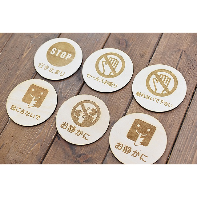木製サインプレート◆行き止まり STOP 警告 呼びかけ◆メッセージプレート◆ドアプレート 丸形◆レーザー加工◆ハンドメイド◆各種◆