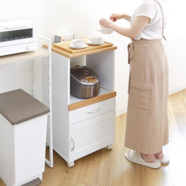 《 LH16492 白 ホワイト キッチンワゴン 台所収納 食器収納 収納キャビネット キッチンキャビネット 収納棚 多目的ラック ストッカー ストック 保管 収納家具 レンジボード 棚 北欧 木製 木目 ナチュラル 電子レンジ 炊飯器 ポット スライド棚 キッチン家具 台所家具 キッチンストッカー 幅 45 奥行 40 コップ グラス 皿 お皿 カトラリー 調味料 コーヒー 紅茶 リビング ダイニング 食卓 おしゃれ お洒落 オシャレ 家具 インテリア 新生活 引越し 新婚 ひとり暮らし 一人暮らし 》