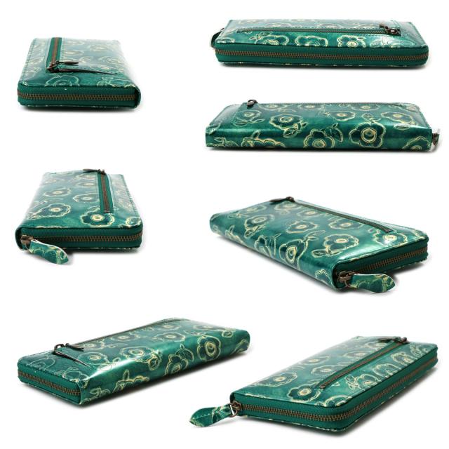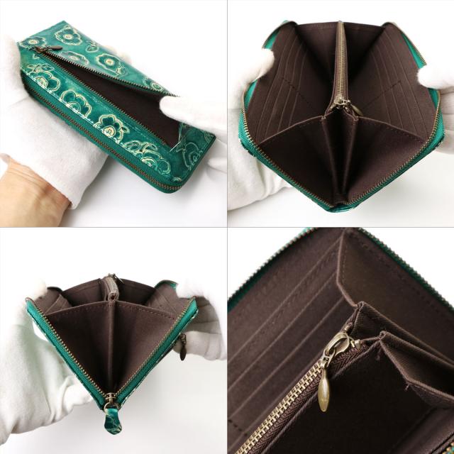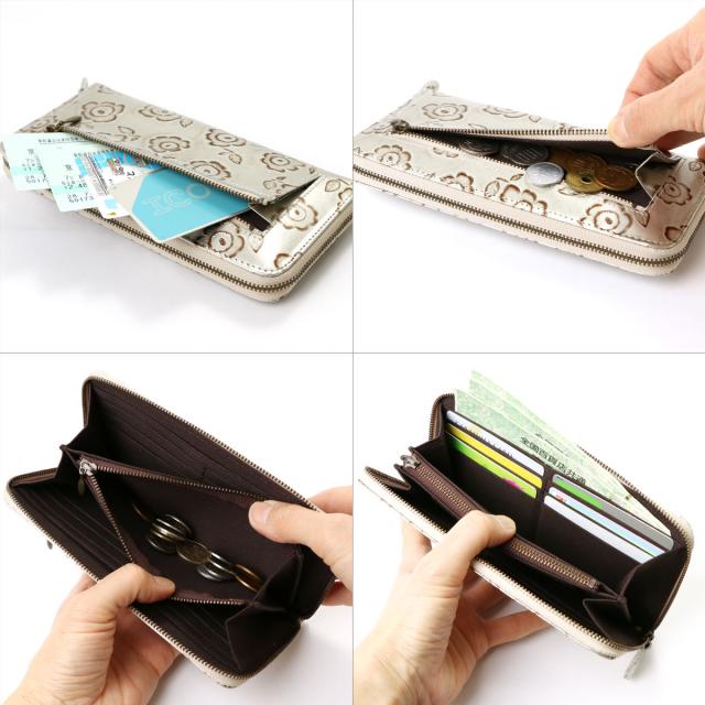 名称:innocent Sac 花柄型押し×メタリック×グラデーションレザーレザーラウンドファスナー長財布