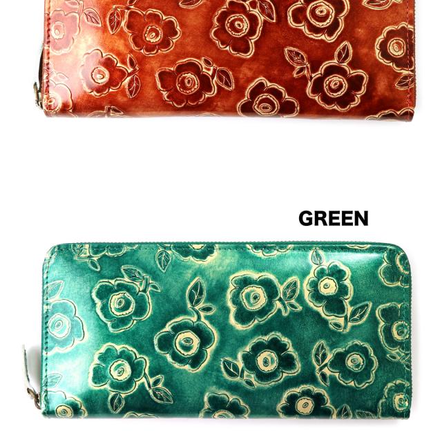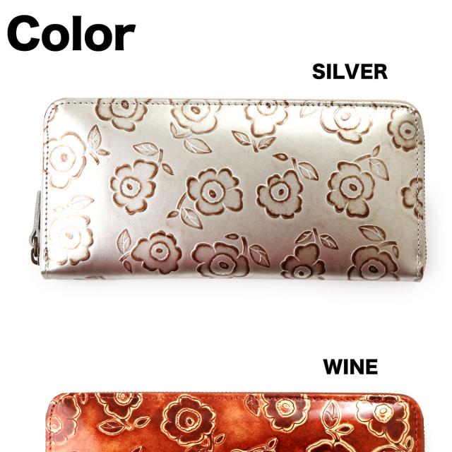 ラウンドファスナー長財布 花柄 型押しレザー メタリック 手染めグラデーションレザー innocent Sac イノセントサック 本革 日本製 レディース 春財布