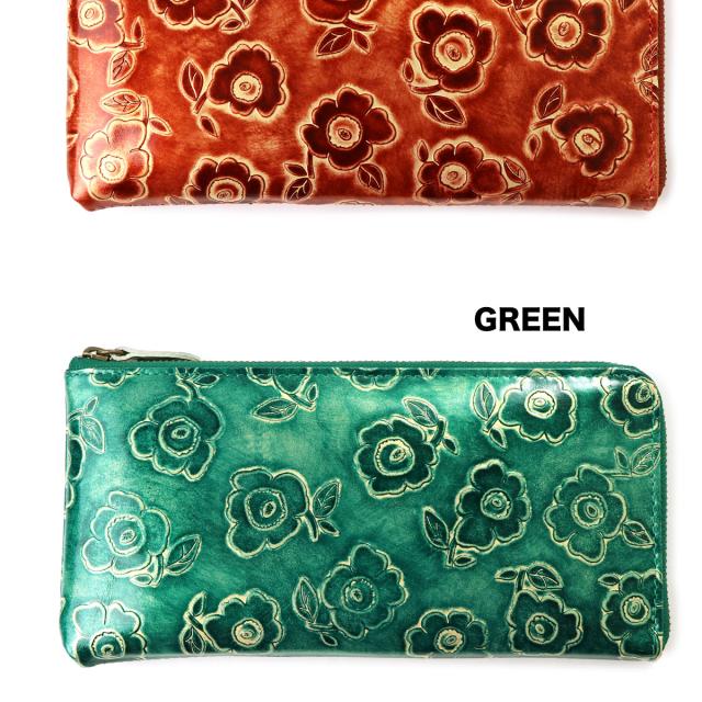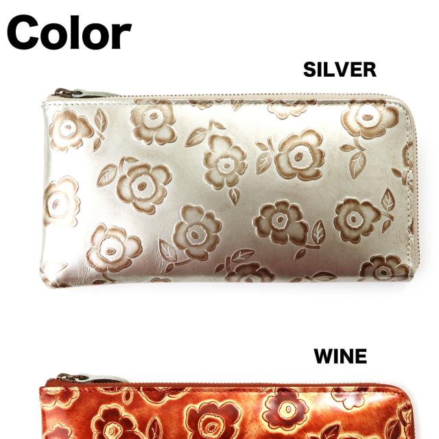 L字ファスナー長財布 エル字 花柄 型押しレザー メタリック 手染めグラデーションレザー innocent Sac イノセントサック 本革 日本製 レディース 春財布