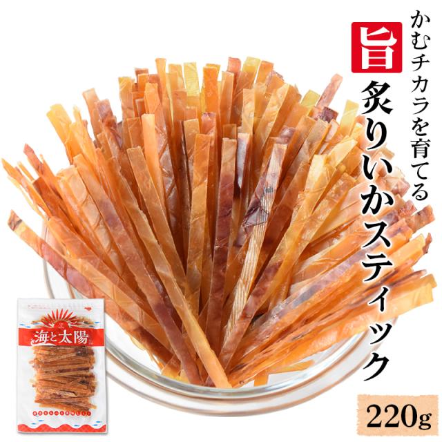 <旨炙りいかスティック220g> かむチカラを育てる するめ ジャーキー 宴会 定番 駄菓子 チャック付き おつまみ 珍味 海と太陽 お試し クーポン消化 ポイント消化 イカスティック シート 送料無料 クリスマス 年末年始