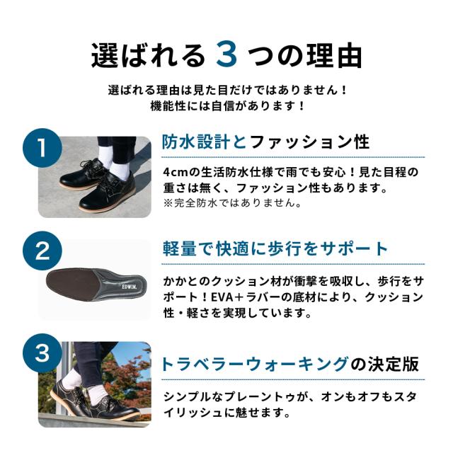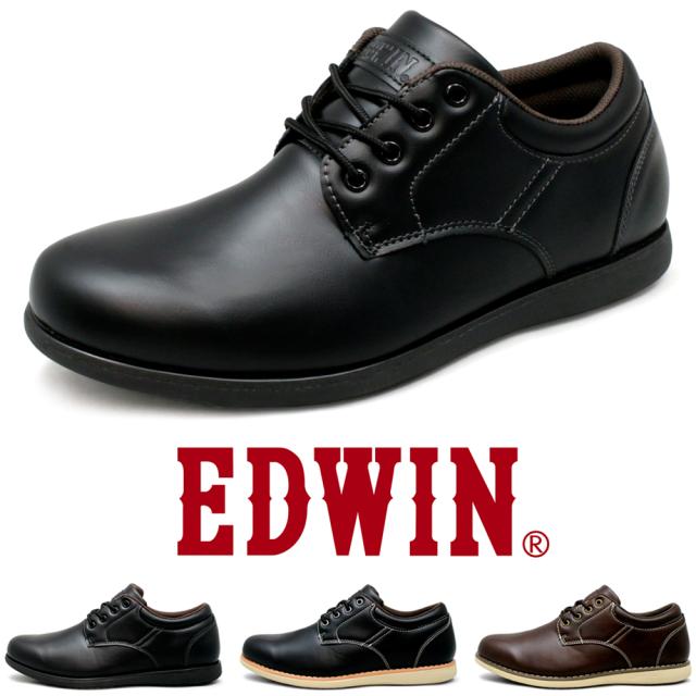エドウィン 防水 カジュアルシューズ メンズ 革靴 ビジネス スニーカー 軽量 耐滑底 プレーントゥ おしゃれ 紐靴 EDWIN edm456|正規販売店