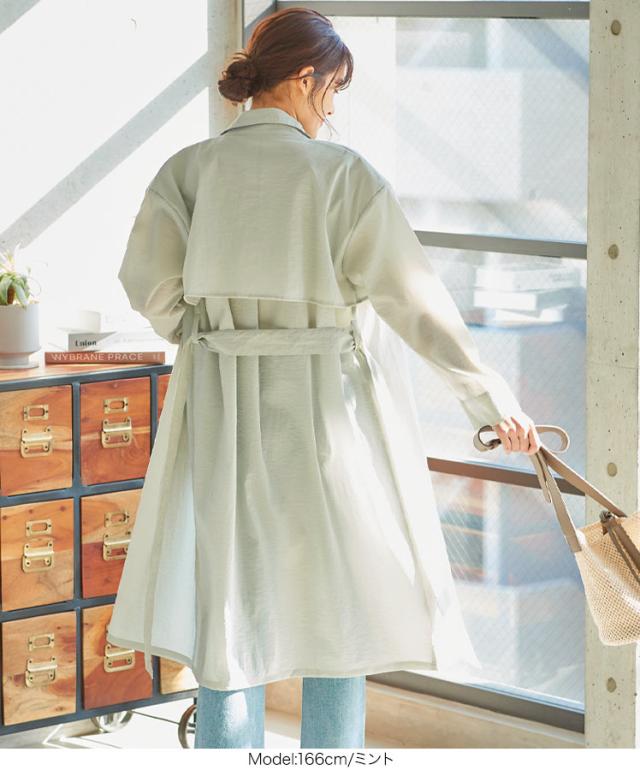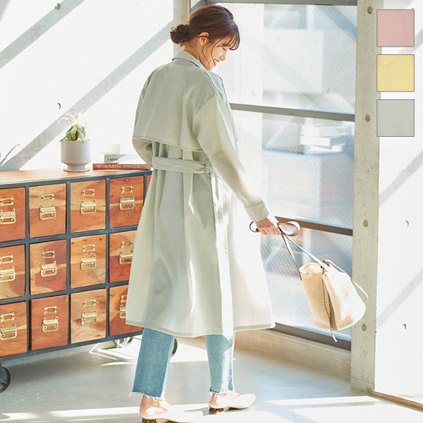春新作 シアートレンチコート K1024 入荷済 レディース アウター 羽織り 長袖 ロング 透け 大人 きれいめ ウエストマーク 春 トレンチコート ロング丈 トレンチ ロングコート スプリングコート シアー 薄手 ガウンコート おしゃれ カジュアル 40代 50代
