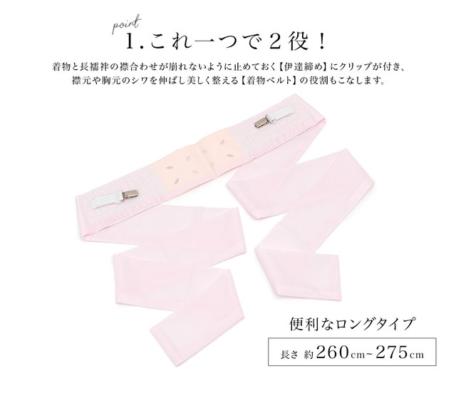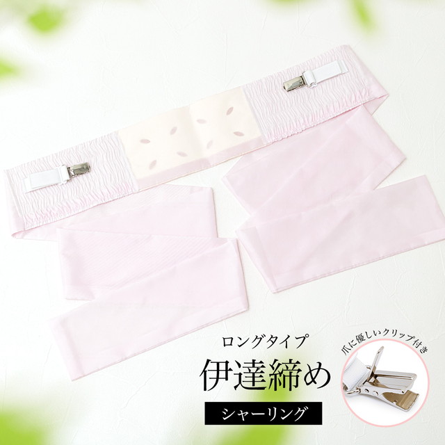 伊達締め シャーリング クリップ付 着付け小物 和装小物 通年 着物ベルト ロング ピンク メール便 送料無料