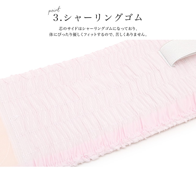 芯のサイドはシャーリングゴムになっており、お腹周りが苦しくなる事もありません。