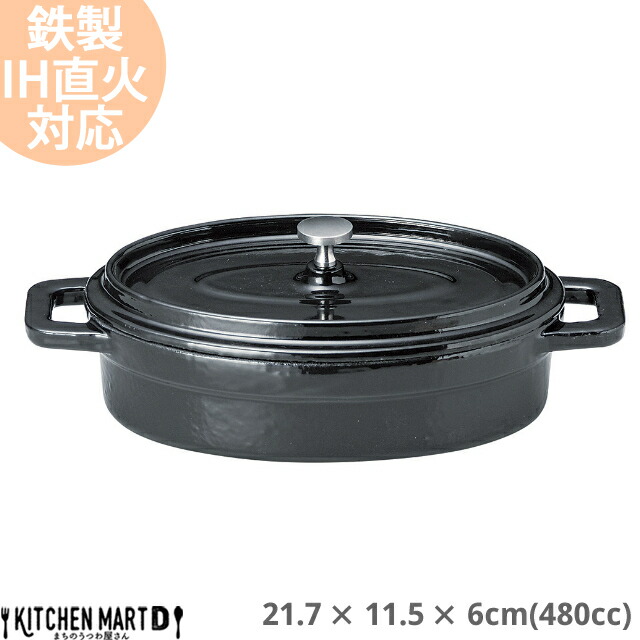 送料無料 鉄製 ココット楕円 480cc ブラック 黒 21.7×11.5×6cm 蓋付 取っ手付き スフレ 耐熱 IH対応 オーブン対応 直火対応 ホーロー仕上 おしゃれ かっこいい かわいい ホームパーティー 業務用 レストラン カフェ 光洋陶器 レンジ不可 食洗器不可 ラッピング不可