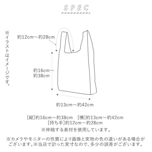 | サイズ | [縦]約16cm〜約38cm/[横]約13cm〜約42cm [持ち手]約12cm〜約28cm ※伸縮する素材を使用しています。 ※サイズは当店平置き実寸サイズです。実際の商品ならびにメーカー表記サイズとは多少の誤差が生じる場合がございます。あらかじめご了承ください。 |