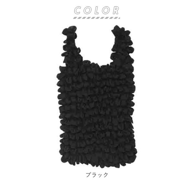 | 注意点 | ※このバッグは防水加工されておりませんので、バッグ内の溜まった水分が染み出てくる場合があります。 ※無理に大きなものを入れたり、先の尖ったものを入れると、製品にキズが付き破損する場合があります。 ※火のそばに置かないでください。 ※水洗いが可能ですが、洗濯機・乾燥機のご使用やドライクリーニングはお避けください。 ※絞りが伸びてきましたら、手洗いをして形を整えてください。 ※カメラやモニターの性質により、画像と実物の色の違いがある場合がございますのでご理解願います。 |