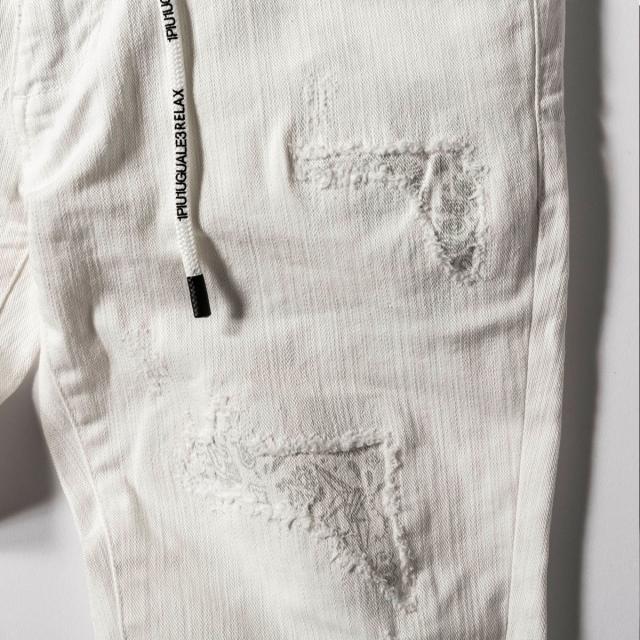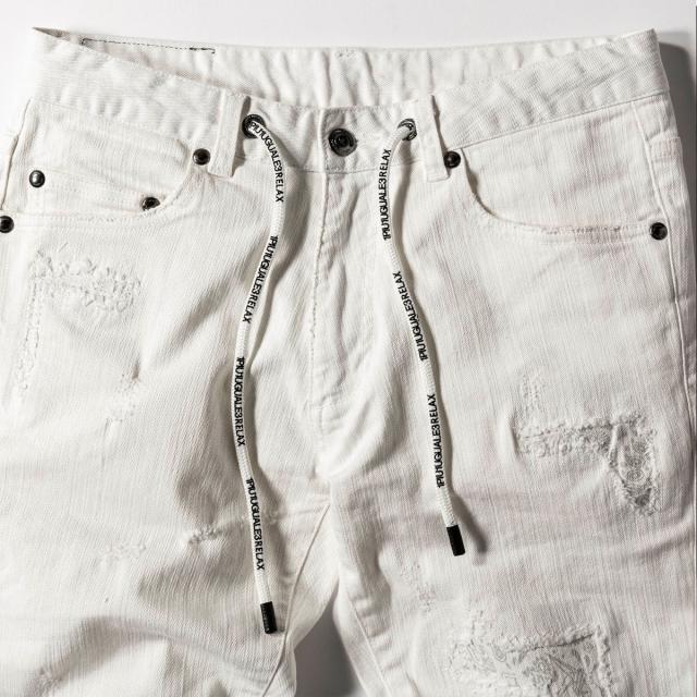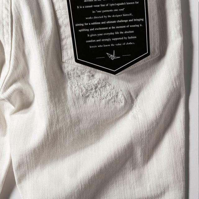 ウノピゥウノウグァーレトレ リラックス(1PIU1UGUALE3 RELAX)/1PIU1UGUALE3 RELAX アンクル丈ホワイトダメージデニムパンツ