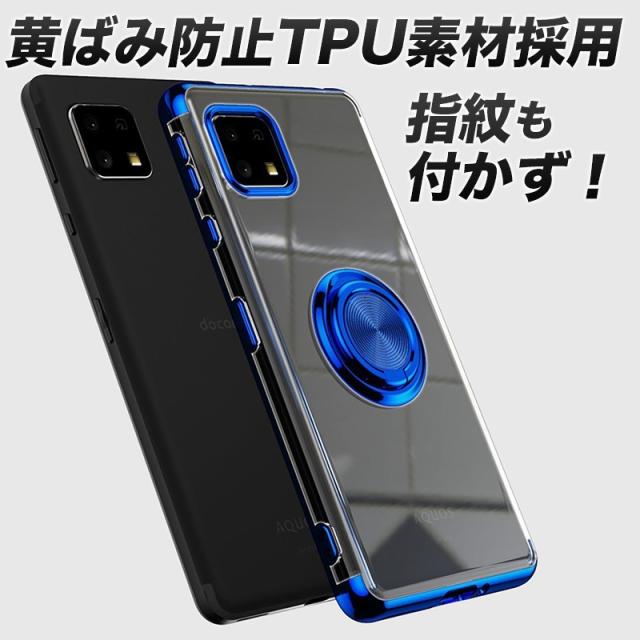 AQUOS sense4 sense5G ケース リング付き 耐衝撃 透明 薄い 軽い 全4色 光沢 メタル内蔵でマグネットに付く スタンド機能 カメラレンズ保護構造 オシャレ アクオス センス4 センス5G 衝撃吸収 人気 回転リング おしゃれ シンプル agesugi_ssm