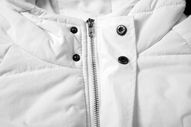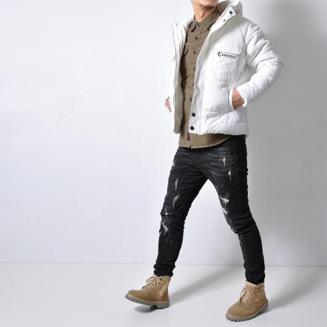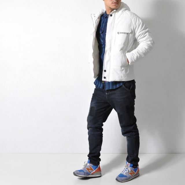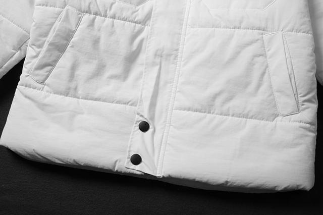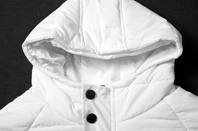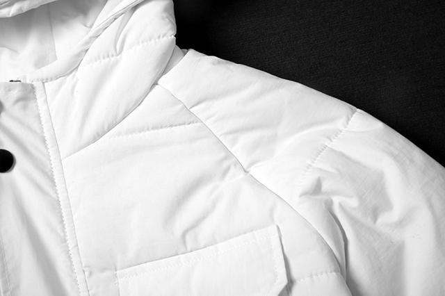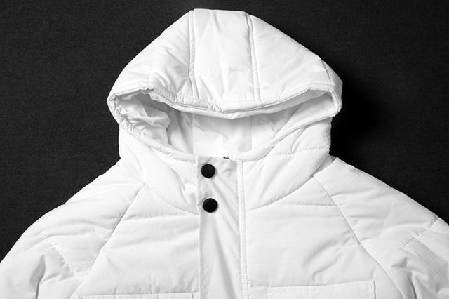 フード付きなので暖かく、冬に映えるホワイトカラーなので
